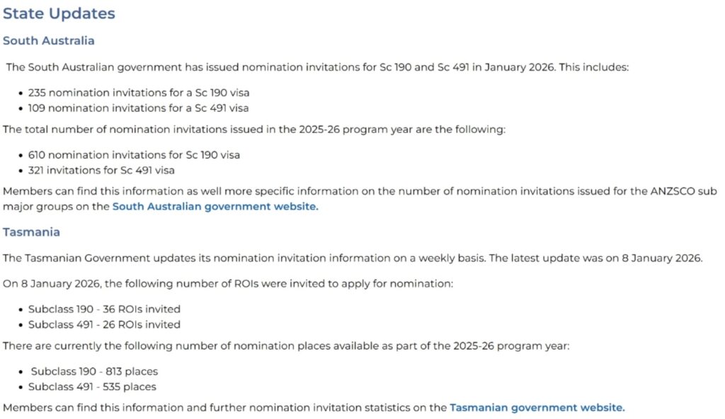 2026年剛開年,南澳和塔州相繼更新州擔保邀請數據。 本輪更新不僅有邀請數量,還公佈了: