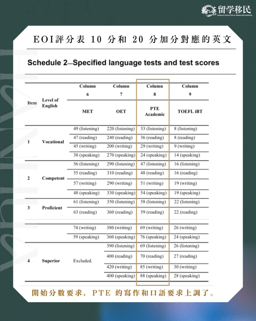 485簽證PTE對應分數降低