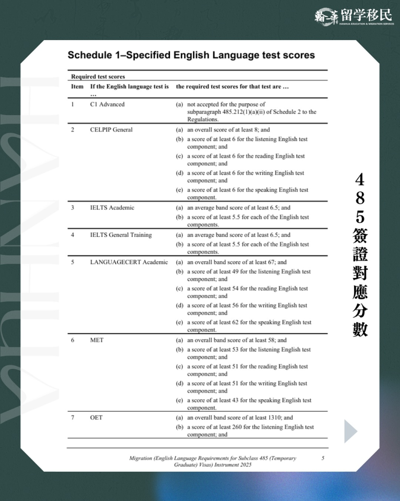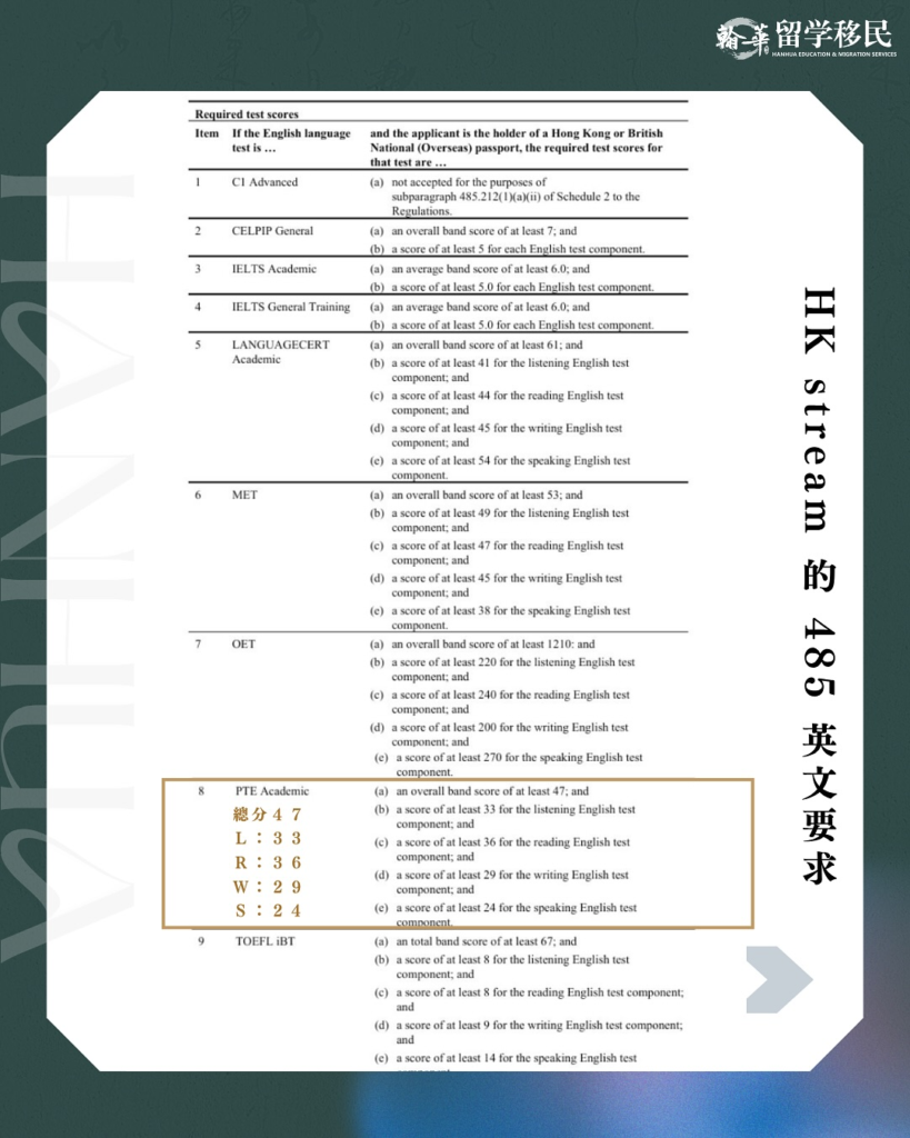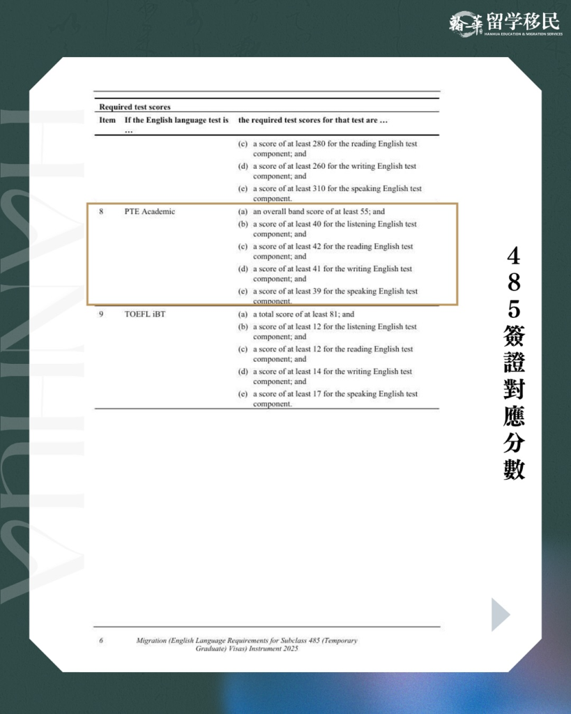 「485簽證 PTE分數降低」