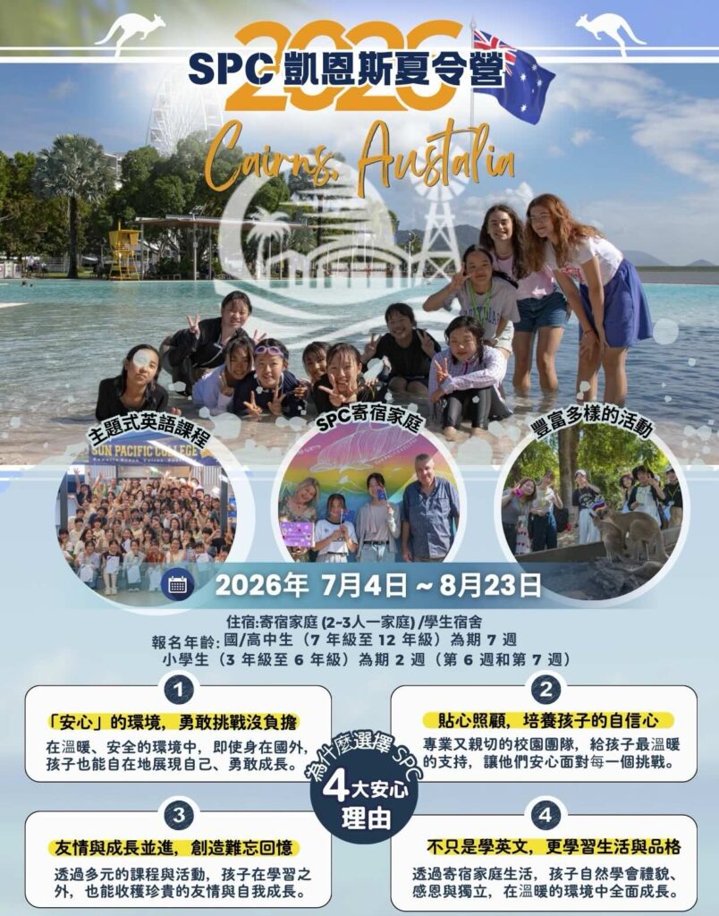 **寄宿家庭將為每位學生提供三餐及床位,房型(單人房、雙人房或三人床型(單/雙人床、雙層床、無床架床墊等)將依各寄宿家庭實際情況而有所不同。 - 申請截止日期: 2026年6月14日