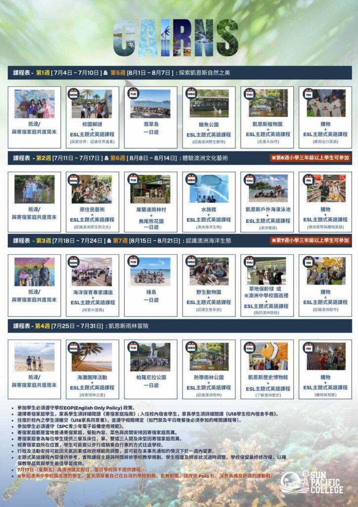 - 🏠 住宿: 寄宿家庭(每戶2-3名學生)/ 學生宿舍(數量有限)
