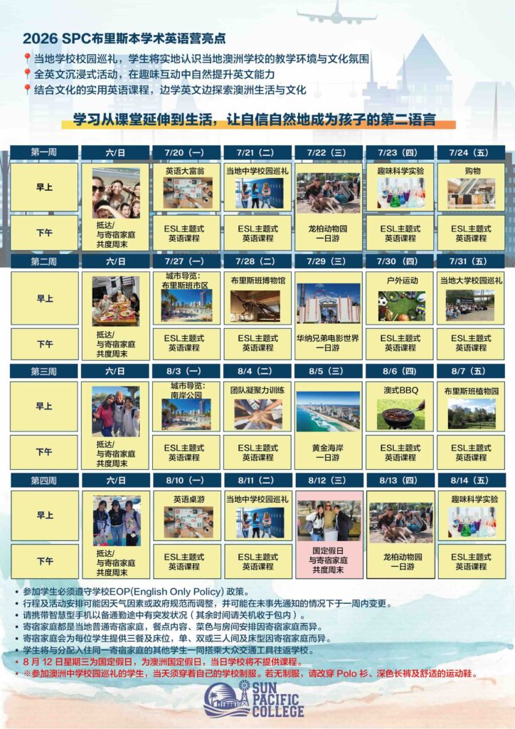 6. 结构严谨的项目,非常适合希望提高英语水平并深入了解澳洲校园生活的学生。